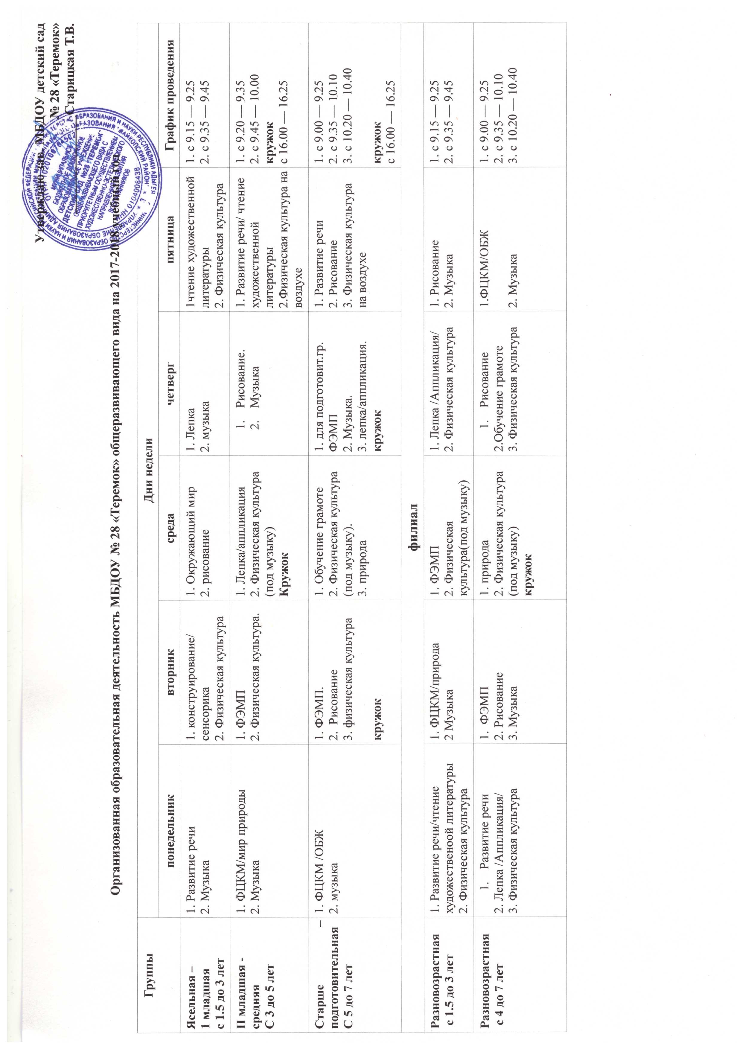 Организационная образовательная деятельность на 2017-2018 год